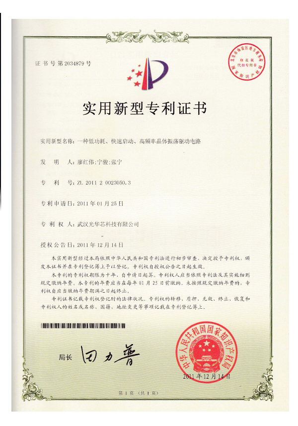 實用新型專利證書