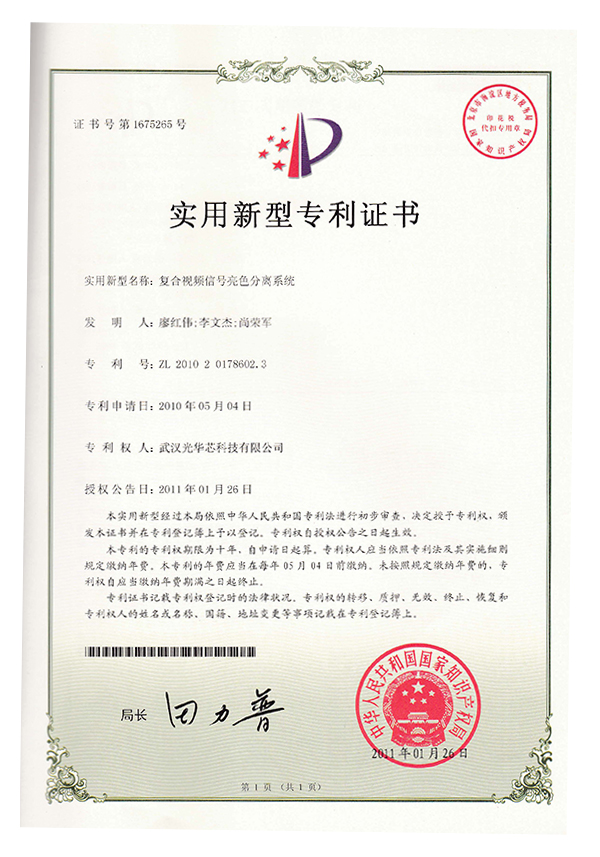 實(shí)用新型專利證書(shū)