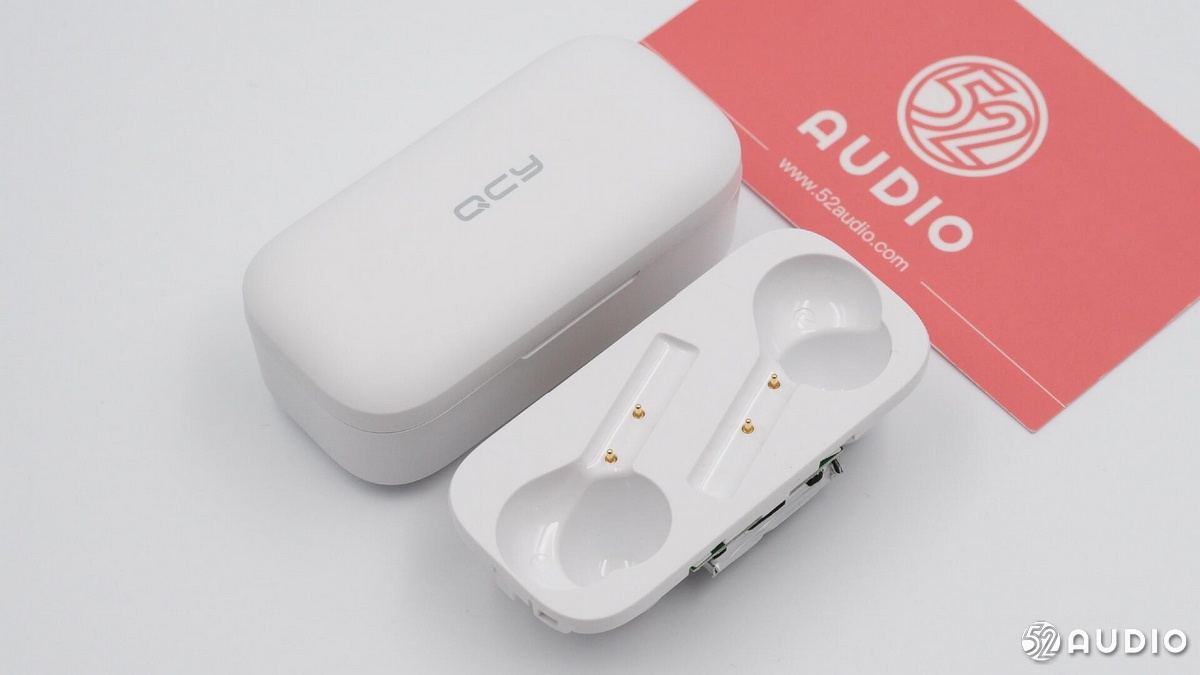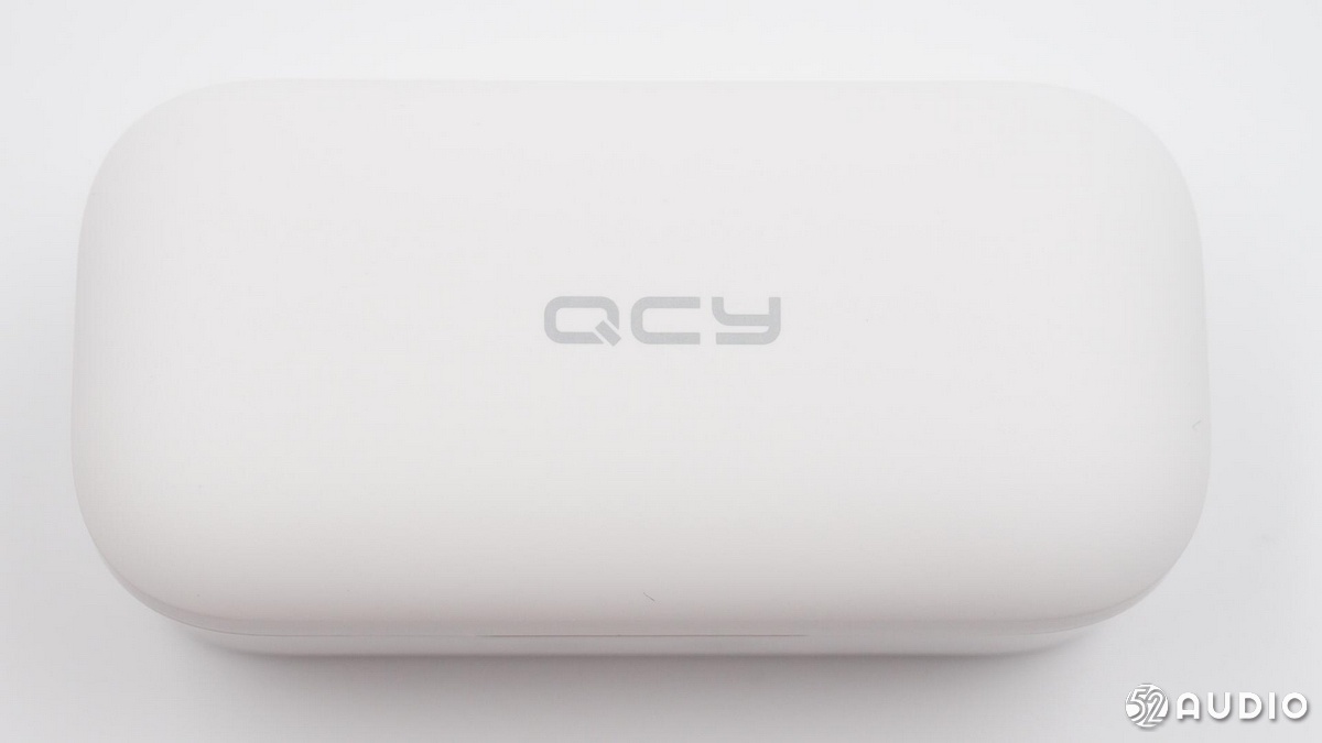 充電盒為“肥皂盒”造型,手感比較細膩,頂部是QCY的品牌Logo。