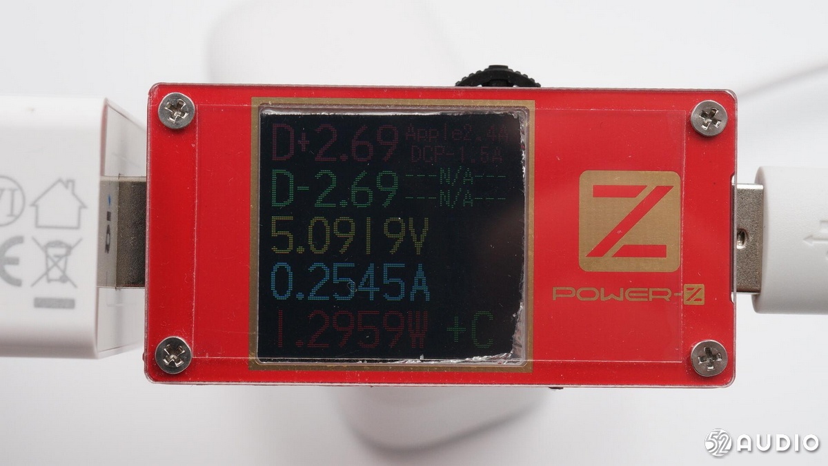 我愛音頻網采用ChargerLAB POWER-Z KT001便攜式電源測試儀對QCY T5 TWS藍牙耳機進行有線充電測試,充電功率約為1.3W。