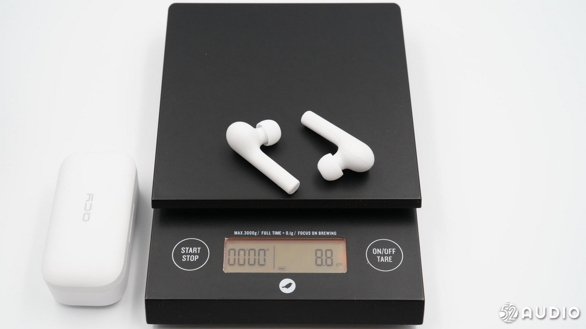 左右耳機重量:8.8g。與QCY T4相比,充電盒電池容量更大,所以重了幾克。