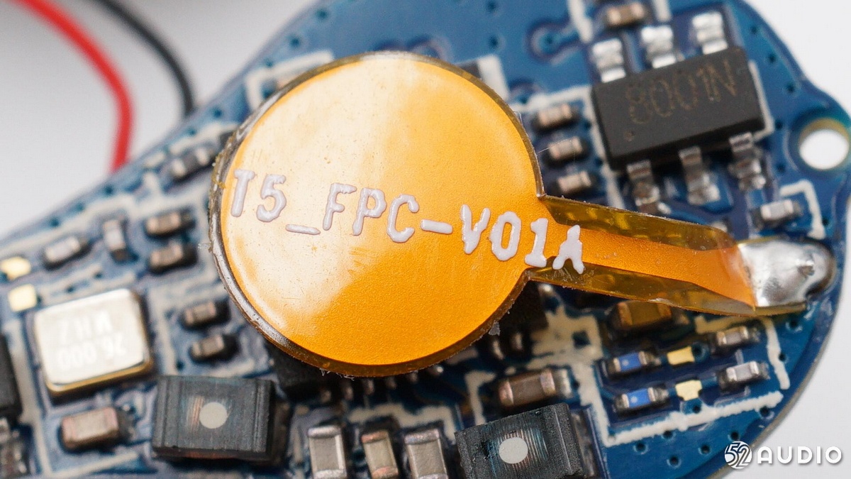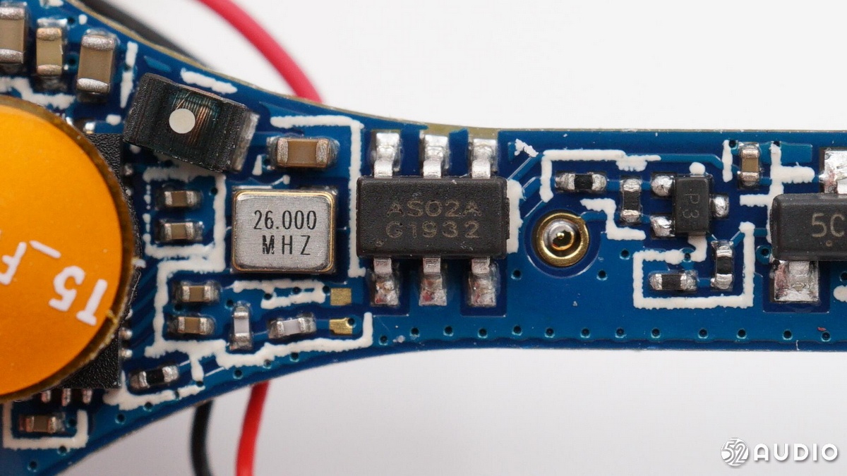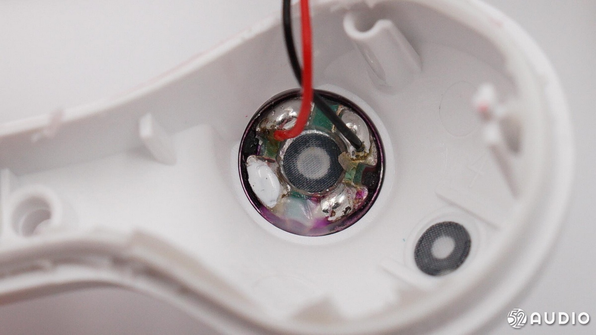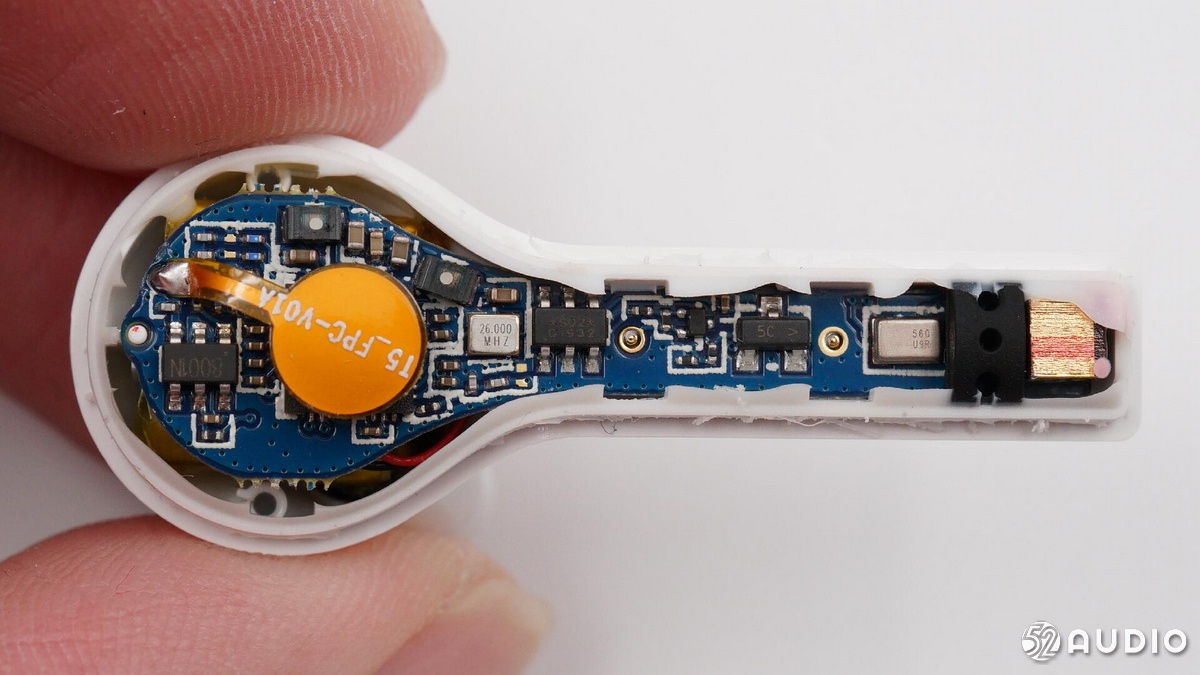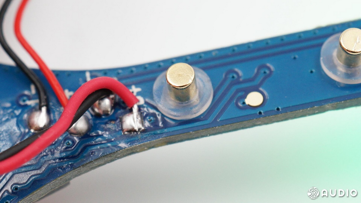 耳機內部電路一覽,電池和揚聲器通過導線連接至主板。