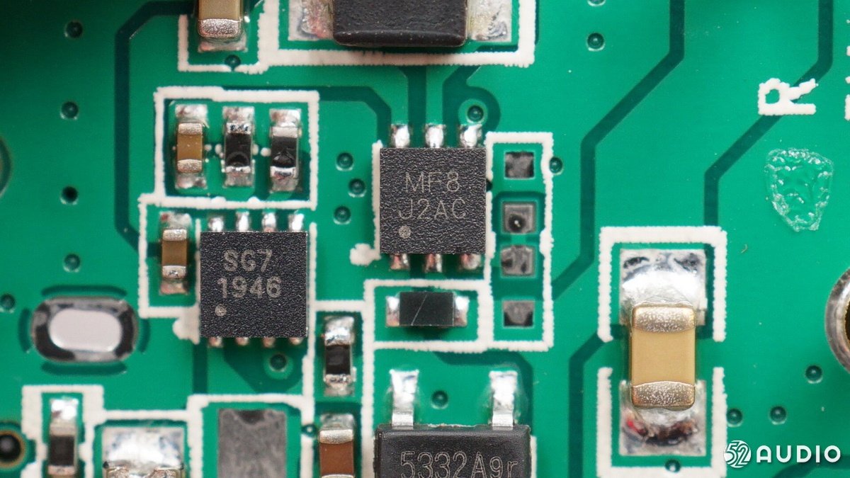 絲印 MF8的同步升壓IC,將內部電池升壓為耳機充電。