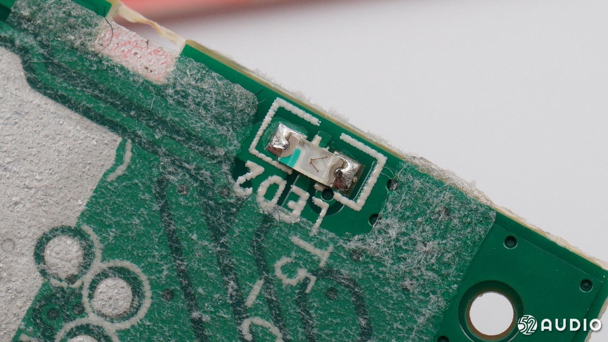 主板背面從左至右依次是藍牙天線、麥克風拾音孔的保護罩、充電銅柱和導線的焊點。