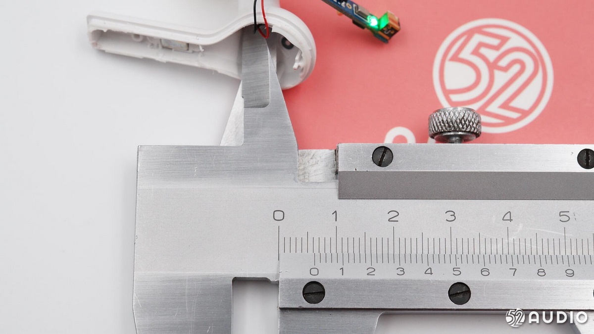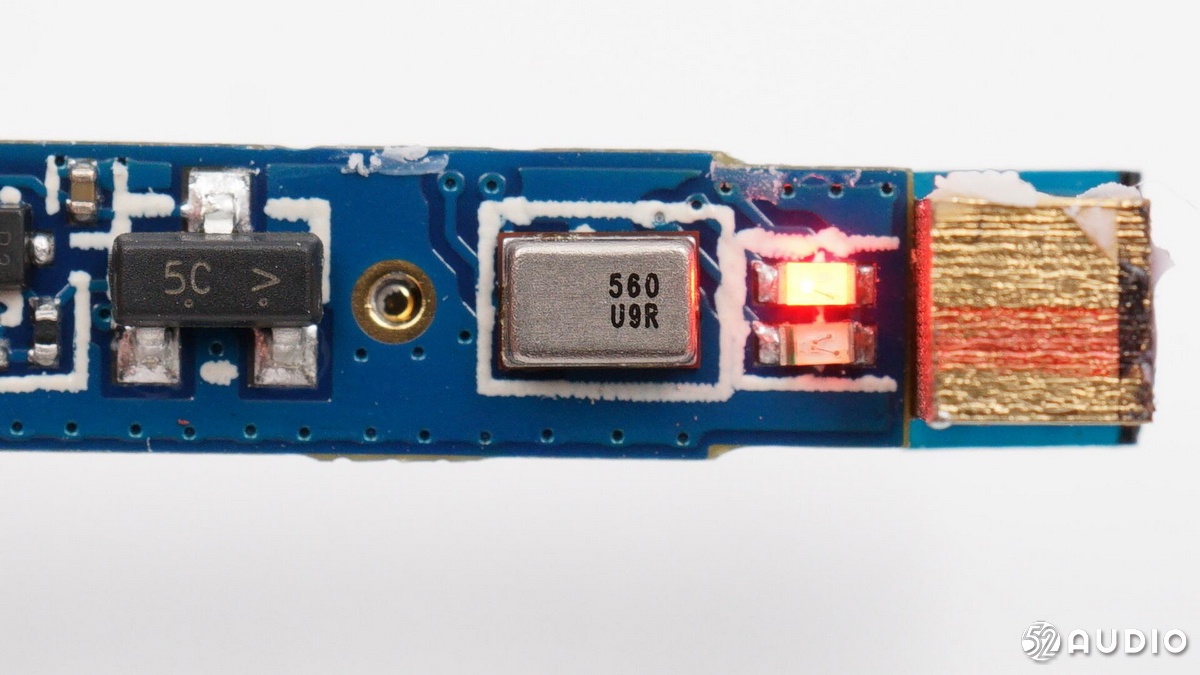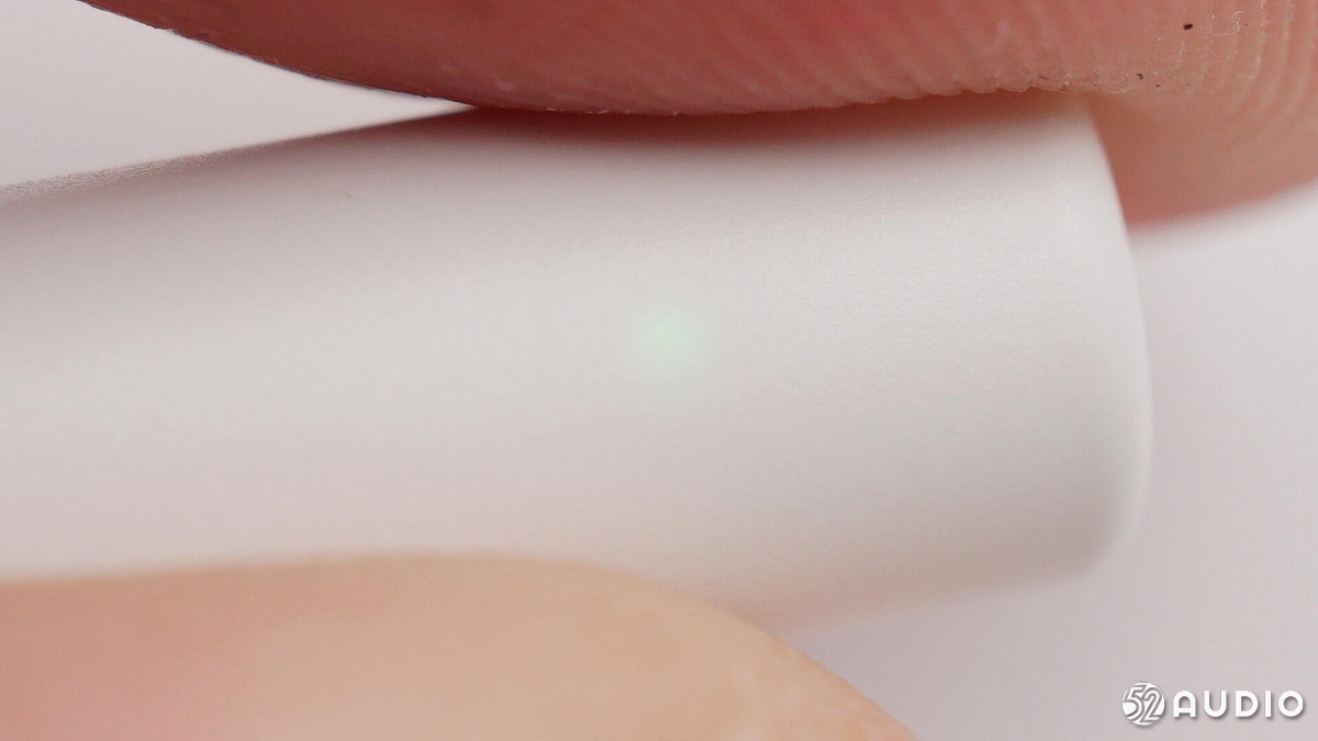 耳機柄底部,外側隱約可以看到指示燈,指示燈位置的殼體特意做的比較薄。