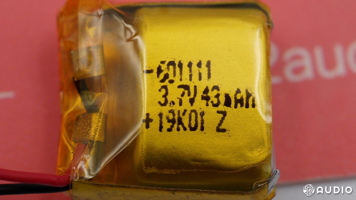 電池信息,型號601111,額定電壓3.7V,額定容量43mAh。耳機電池可以給主控芯片、指示燈、麥克風、揚聲器等元器件供電。