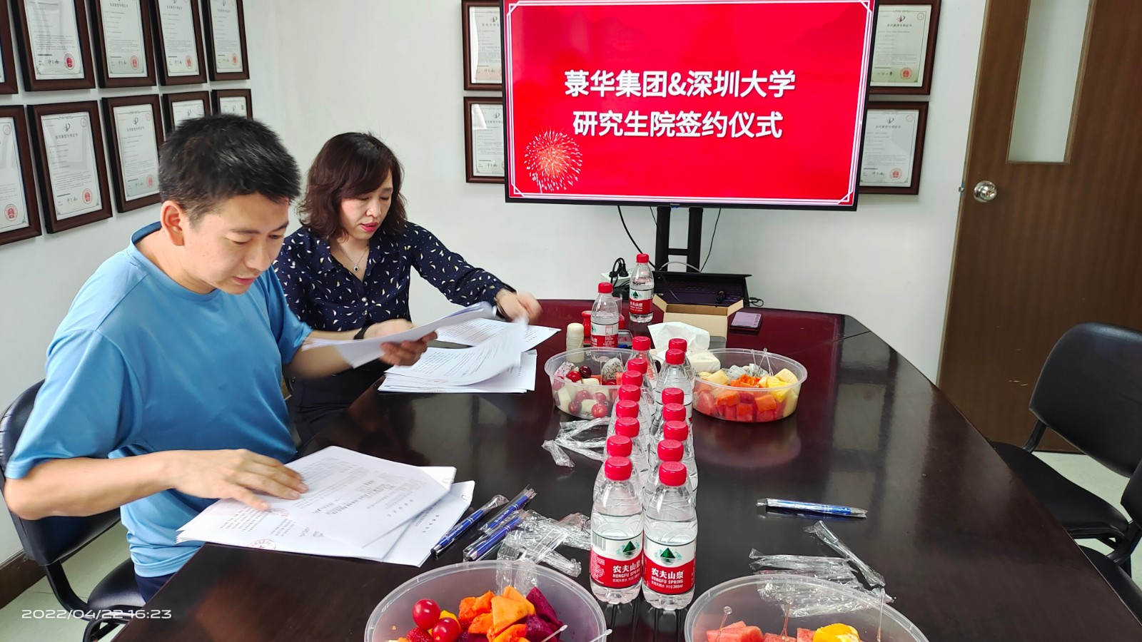 4月22日下午,菉華集團與深圳大學研究生院合作簽約儀式在菉華集團會議室舉行,菉華集團總經理張總,深圳大學機電與控制工程學院副院長潘劍飛先生等出席些次簽約儀式。