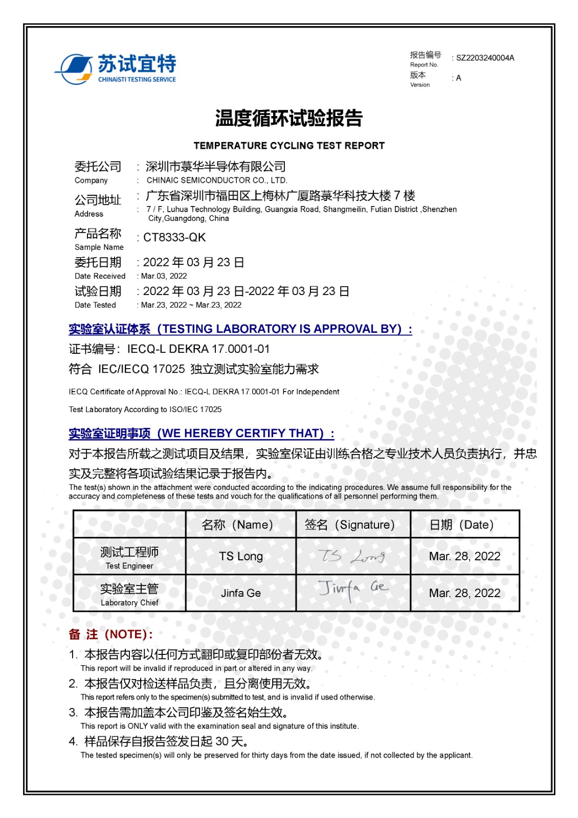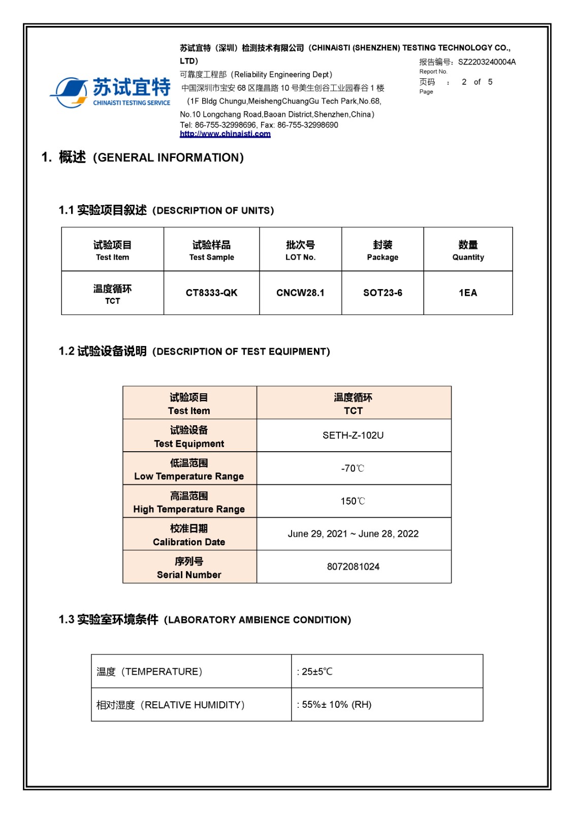CT8333-QK SOT23-6_溫度循環試驗報告