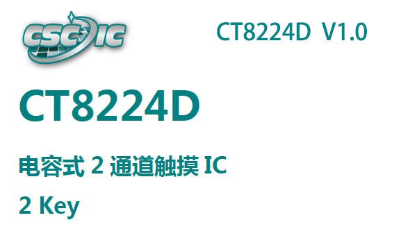 電容式2 通道觸摸IC CT8224D V1.0發行。CT8224D 是一款電容式按鍵觸摸及接近感應開關控制芯片,替代傳統機械結構開關。產品采用CMOS工藝制造,結構性能穩定,功耗低,通過引腳可配置多種輸出模式。芯片最多可支持...