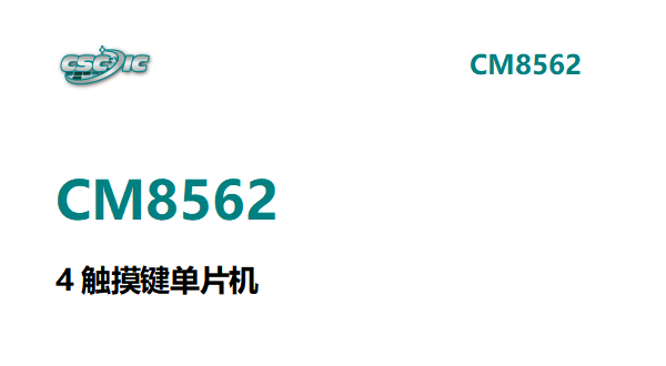 CM8562是一款電容式4鍵觸摸8位單片機,1K×14位OTP型程序存儲器,64字節SRAM型通用數據存儲器,4路PWM。